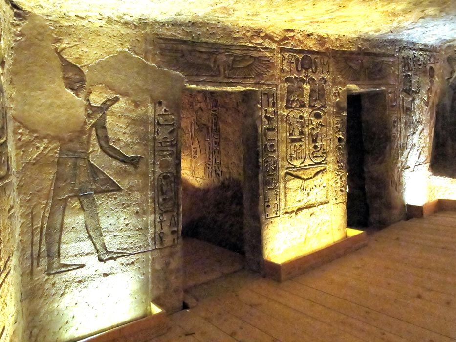 L'entrée de ces 3 salles se situe dans la première salle hypostyle, côté ouest. Les numéros de Porter et Moss correspondants sont I, II et II et les lettres N, O et P sont attribuées dans Madeleine Peters-Destéract. Cette identication par lettres sera utilisé dans cette description.La salle N est une antichambre qui permet d'accéder aux salles o et Pqui contiennent des banquettes faisant le tour de la salle et