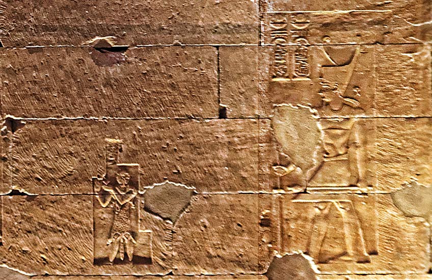 Troisième registre, scène de droite : l'empereur Auguste est précédé par un prêtre Sem. La scène est inachevée, mais il s'agit sans doute d'une entrée dans le temple, car le roi est purifié juste après.