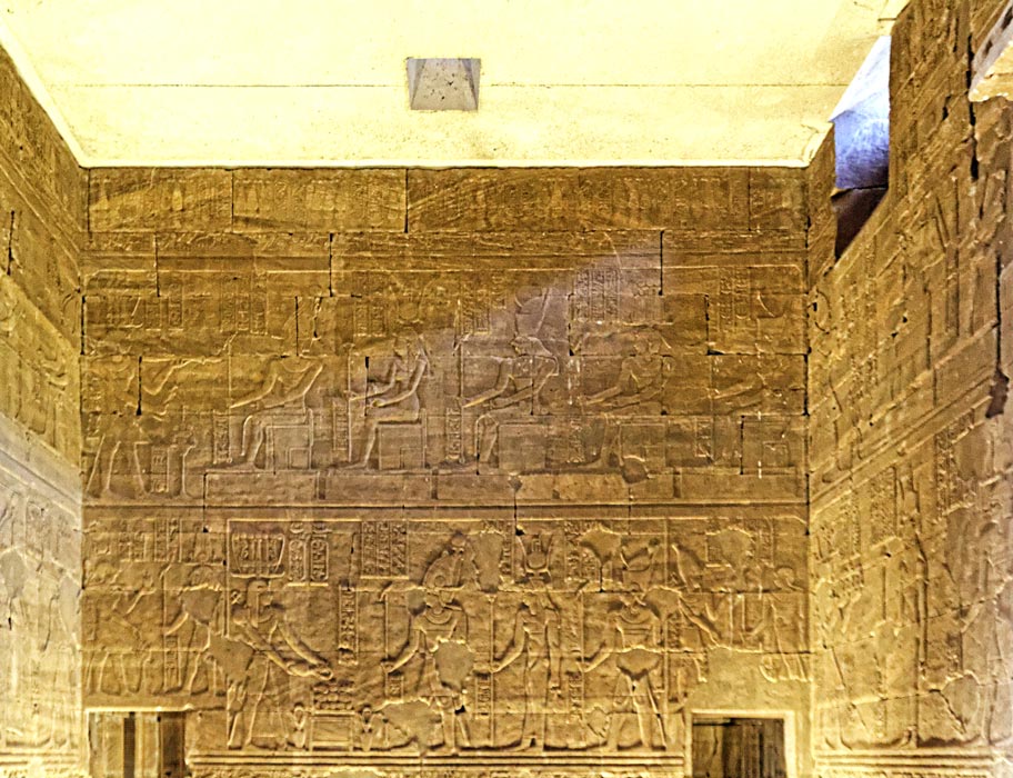 La vue ci-dessus montre la paroi Sud avec une grande scène en haut et 3 scènes en dessous.