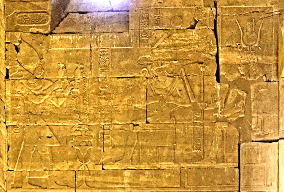 L'empereur offre de la nourriture à Isis et à Mandoulis.