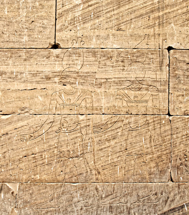 Dans l'entrecolonnement suivant vers le nord, la scène ne comporte que ces deux personnages à peine gravée. Ils sont mal positionnés et la main du personnage de droite touche le bras du personnage de devant.
