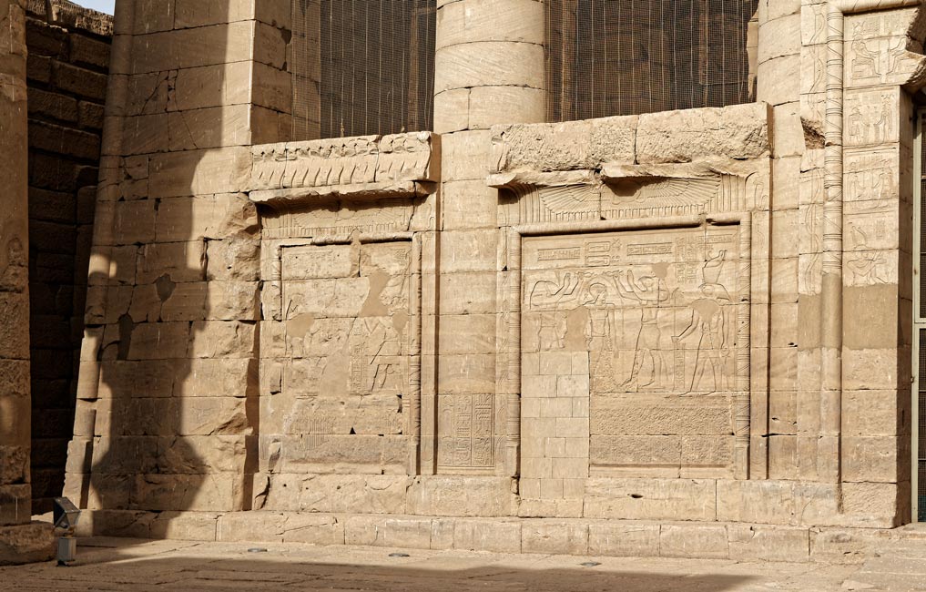 Chaque panneau est surmonté d'un disque ailé. Les détails en sont montrés ci-dessous.