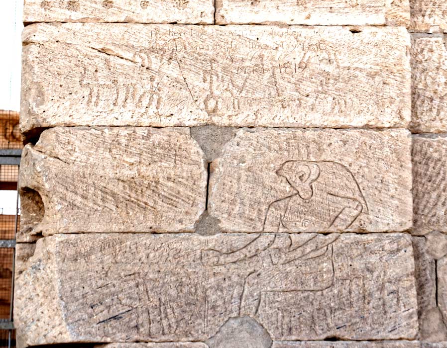 Ce graffito d'Horus assis a été tracé sur le jambage droit de la porte extérieure.